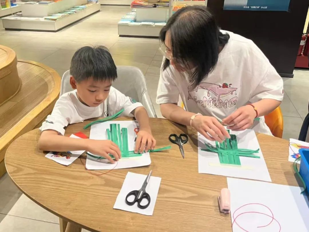 新乐新华书店开展“童趣绽放 创意无限——儿童节创意花束制作”主题活动。活动现场,家长与小读者们携手合作,通过裁剪、拼贴、装饰等环节共同完成花艺作品。活动既让小读者们感受了花艺创作的乐趣,又通过亲子互动增进了情感交流。