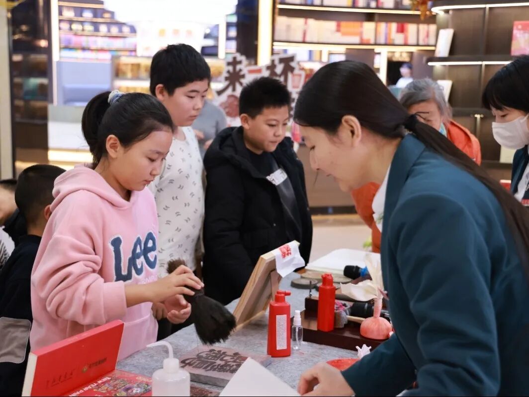 在老师的讲解与示范下,小读者们踊跃尝试拓印技艺,在亲身体验中感受非遗的独特魅力和传统文化的深厚底蕴。