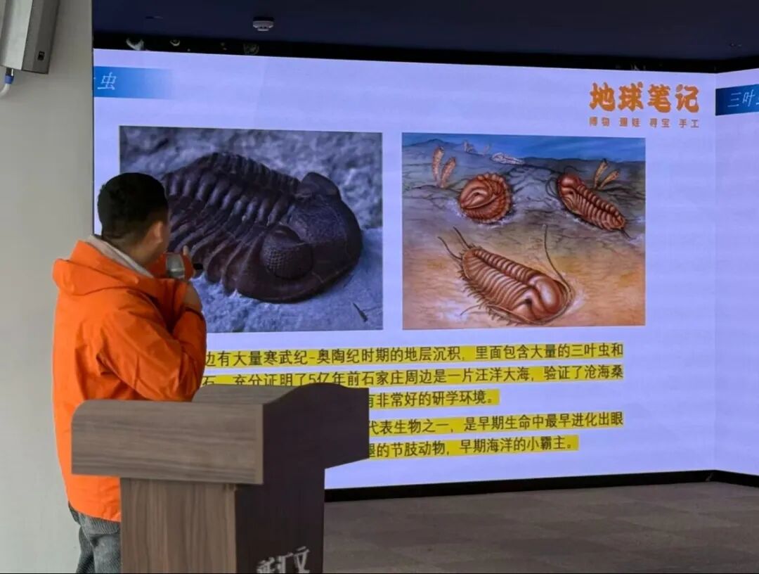 活动邀请地球笔记的吕老师,带来涵盖十大类目的三叶虫真实化石标本。在老师引导下,小读者们主动观察、亲手触摸这些化石痕迹,感受时间的力量,共同展开一段跨越三亿年的生命史诗。