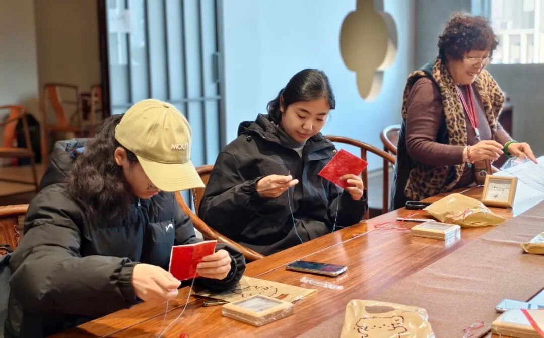活动特邀省级非物质文化遗产代表性传承人邢兰芳老师,带领参与者学习平针、打籽针等经典针法,图案融合了传统缠枝纹与现代简约设计,在手作中体验古今之美,共同完成一件独特的刺绣作品。