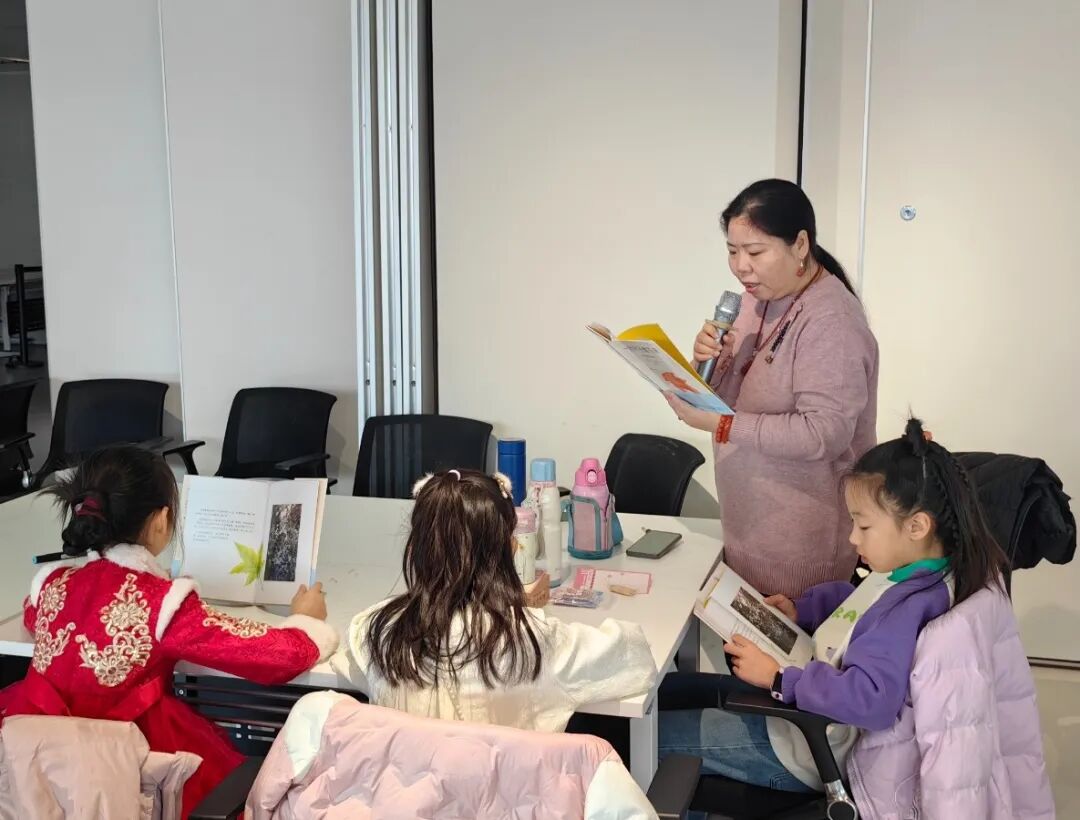 活动围绕“自然生命 循环之美”展开,共读绘本《一片叶子落下来》。追随叶子“弗雷迪”的四季旅程,感受生命成长与回归的深意。随后的手工环节中,亲子共同绘制生命之树卡片与书签,将感悟凝于方寸之间。