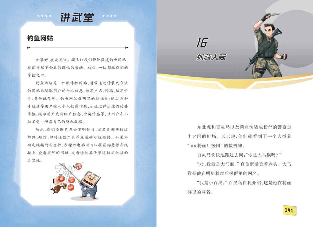 而八路选择将这样的现实,以孩子能理解、能承受、更能从中汲取知识和力量的方式,写进一部面向8–12岁读者的系列小说中。 这背后,是一种深沉的信任:相信孩子有权利了解世界的真实面貌,也有能力在引导下辨明是非、守护正义。 不回避黑暗 是为了更好的照亮前路 过去,我们常认为“保护孩子”就是屏蔽一切负面信息。但现实是,诈骗分子早已将黑手伸向未成年人——游戏装备充值骗局、冒充老师收费、虚假追星群……孩子们并非生活在真空里。 《特种兵学校》第十二季没有选择粉饰太平。它让烈火狼被囚禁于电诈园区,让他目睹“猪仔”如何被殴打、胁迫、洗脑;它描写关悦伪装潜入时的心跳加速与生死抉择;它展现张小福在敌我难辨的异国山林如何依靠常识与勇气判断真伪。 这些情节并非为了制造恐惧,而是用故事构建一道“认知防火墙”。当孩子读到“骗子会先给你一点甜头,再让你越陷越深”,他下次面对“免费送皮肤”的链接时,或许会多一分警惕;当他知道“真正的警察不会线上办案”,便可能识破一场精心设计的恐吓骗局。 八路一直坚持创作让孩子在现实中用得上的书,而不是打打杀杀的爽文。第十二季正是这一理念的极致体现——它把反诈教育,变成了特战队员的一场实战任务。 英雄不是天生的 而是在困境中一次次选择善良 本季最动人的,并非枪战或追踪,而是人物在极端环境下的道德坚守。 烈火狼在绝境中没有放弃希望,反而因寻找妹妹而重燃斗志。 关悦明知留下意味着九死一生,却仍为更大的使命按下暂缓归队的按钮。 吴仪文在异国他乡孤立无援,却愿意为了正义拼死一搏。 这些角色之所以令人信服,正因为他们并非无所不能。他们会害怕,会犯错,会因信息不对称而陷入被动。但每一次,他们都选择在黑暗中点亮一盏灯——哪怕微弱,也足以照亮彼此的前路。 尤其值得称道的是关悦的塑造。她的“孤身潜伏”不再是传统英雄主义的单打独斗,而是一种深思熟虑后的责任承担。她的身世之谜,也并非狗血套路,而是与国家利益、历史伤痕紧密相连。这让整部作品在少年热血之外,多了一层家国情怀的厚重底色。 军犬、密码、战术手势: 知识是另一种武器 《特种兵学校》一直坚持“寓教于战”的特色,第十二季更是将这一传统推向新高度。 新登场的军犬“闪电”,不仅带来情感温度,更引出关于动物伙伴、嗅觉追踪、人犬协作的科普。 神秘邮件中的密码线索,可以激发孩子对逻辑推理与信息甄别的兴趣。 “讲武堂”专栏则系统讲解:如何识别钓鱼网站、如何应对陌生人套话、如何在野外发送求救信号…… 这些内容不生硬、不说教,而是自然嵌入剧情——当读者为“闪电能否找到藏匿点”揪心时,已悄然记住了军犬的工作原理;当他们猜测“内鬼是谁”时,已在练习信息交叉验证的思维方法。 知识,在这里成为少年们对抗黑暗的另一种武器。 一部儿童文学的 时代担当 有人说,儿童文学应该“轻盈”。但八路用《特种兵学校》证明:轻盈不等于逃避,热血也可以承载思考。 第十二季之所以重要,不仅在于它讲了一个精彩的故事,更在于它敢于回应时代命题。当全社会都在呼吁“反诈从娃娃抓起”时,这部作品用孩子愿意读、读得懂、记得住的方式,完成了这场全民安全教育中最难的一环——在心灵深处种下警觉与正义的种子。 它告诉孩子:世界有光,也有影;但只要你心中有光,脑中有智,身边有可信的战友,就永远不必向黑暗低头。 特战队员的征途,从来不只是训练场上的泥泞与汗水,更是现实世界中的每一次清醒选择、每一次挺身而出。 而《特种兵学校》第十二季,正是献给这个时代少年的一封战书——致勇敢者,致思考者,致未来真正的守护者。