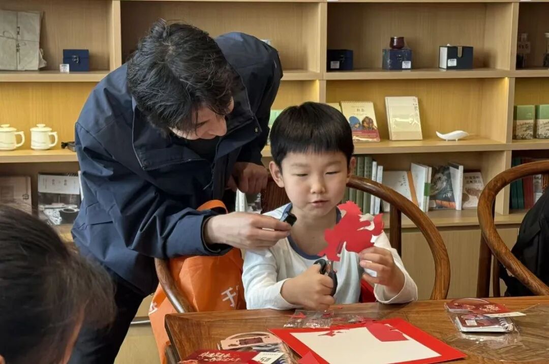 新汇文·文化创意体验中心非遗剪纸体验同步开启,非物质文化遗产代表性传承人赵成龙倾囊相授,读者以剪为笔,在红纸上勾勒骏马纹样,解锁“马上有福”的新春仪式感。