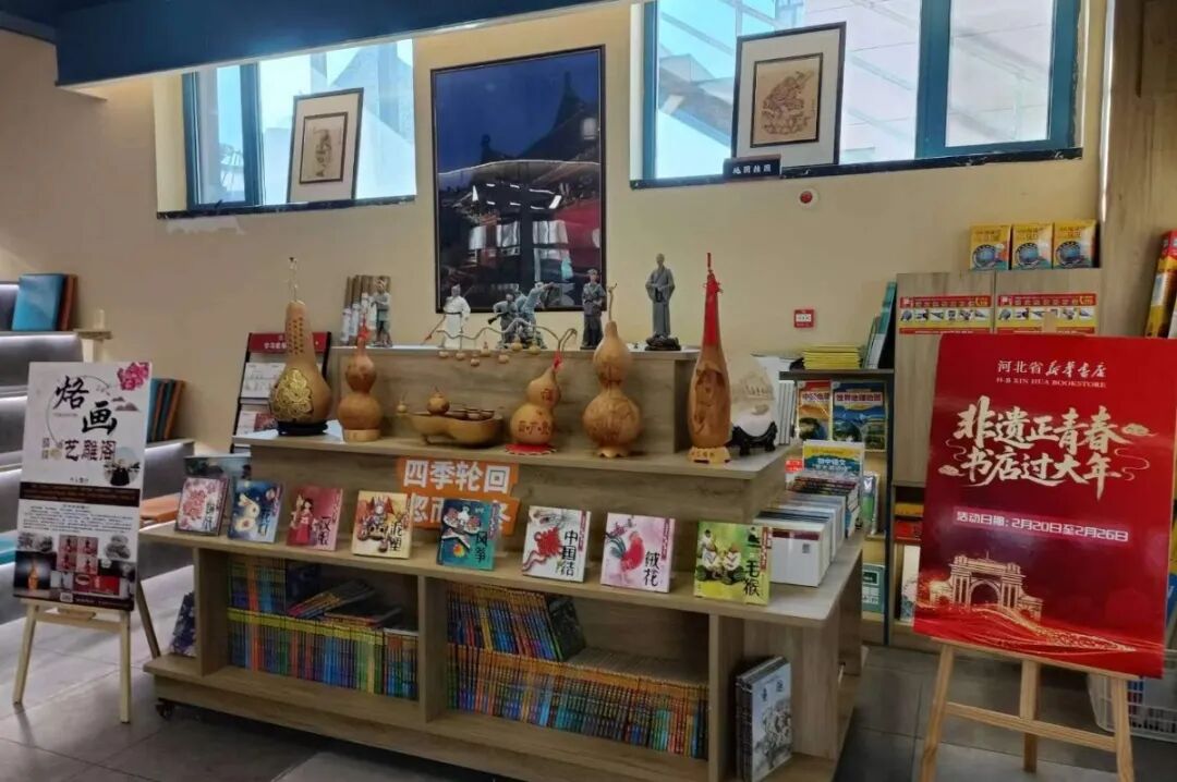 设非遗专台,集中展示葫芦烙画、泥塑等正定本地非遗作品,让进店读者直观感受非遗工艺的独特韵味,实现书香与匠心的交融。
